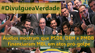 O Movimento Brasil Livre (MBL), responsáveis por proliferar nas redes sociais campanhas de criminalização contra os movimentos sociais, com memes que chamam os atos contra o golpe ao mandato da presidenta Dilma Rousseff seriam o “mortadela day”, ou seja, só por um lanche, aparece nos áudios, apontado como operador do PMDB no esquema da Petrobras, recebendo dinheiro e material do PSDB, DEM, Solidariedade e PMDB.